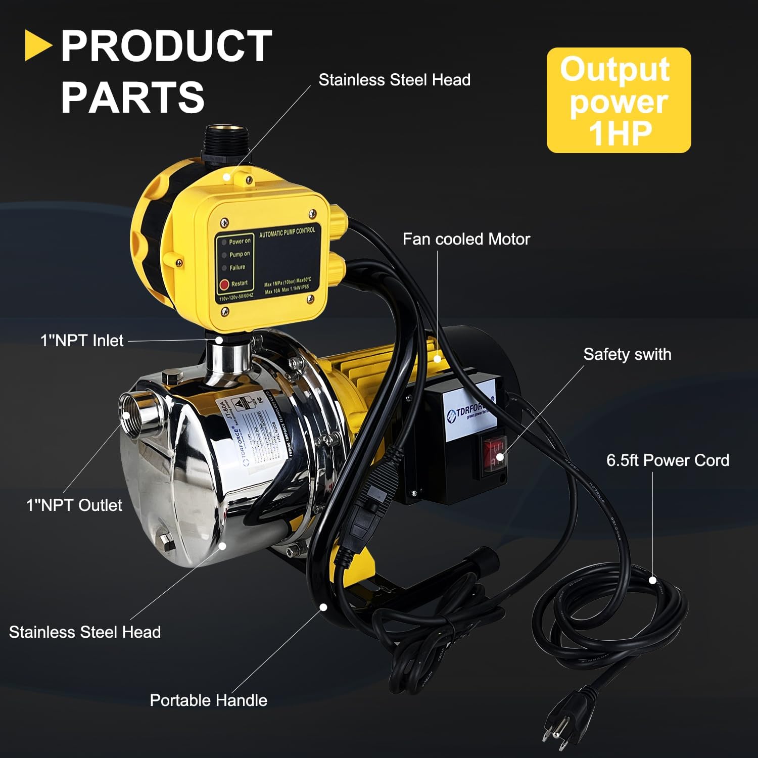 | Included Components | 1 Hp Shallow Well Jet Pump, Automatic Pressure Control Switch, Mounting Hardware, Pipe Adapters, Power Cable |