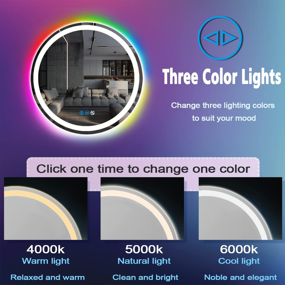 | Additional Features | 3 Color Front Light + RGB Chaing Backlit, Anti-Fog / Defogging Feature, Dimmable, Memory Function, Touch Sensor |