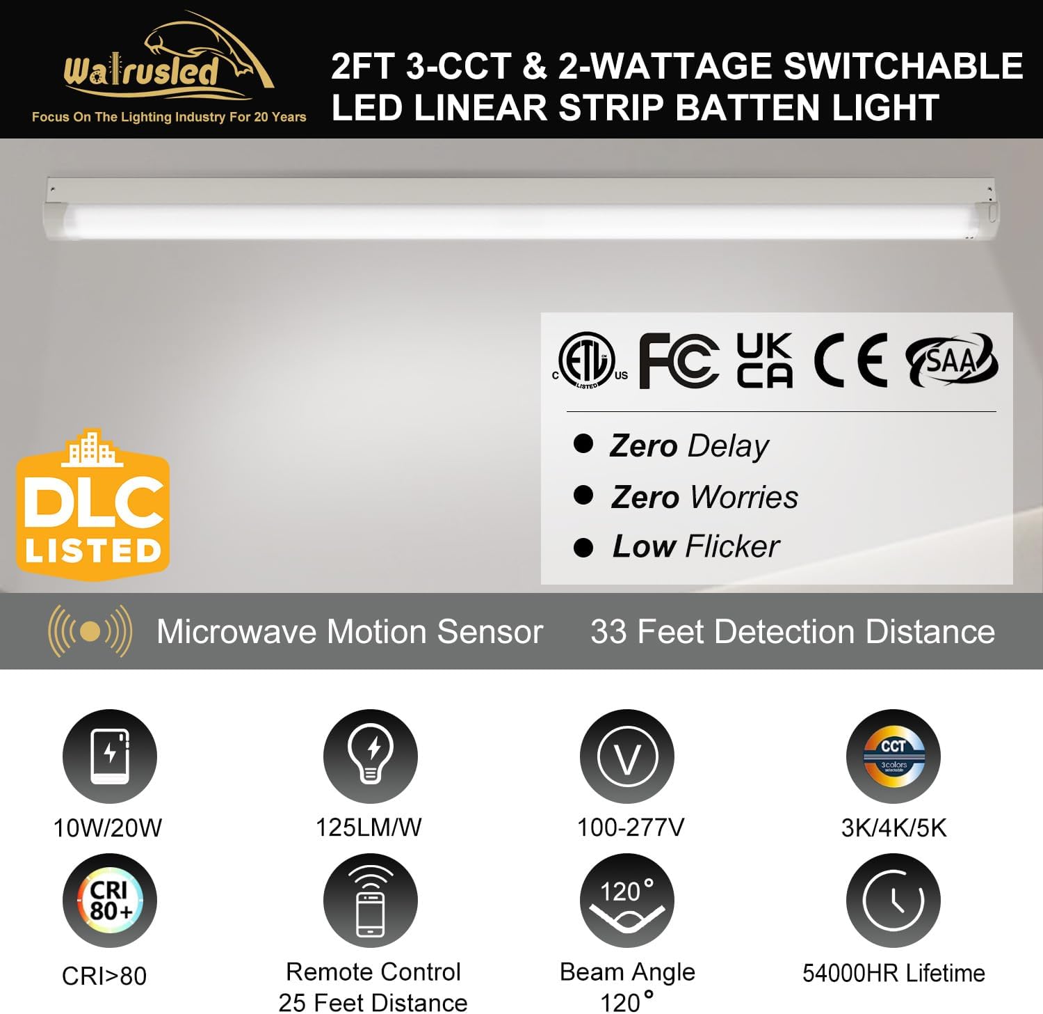 | Other Special Features of the Product | Adjustable Color Temperature, Adjustable Wattage, Dimmable, Adjustable Lumen, Energy Efficient, Shock and Vibration Resistant, Shatter Resistant, Instant On, Remote Control, Tri-level Microwave Motion Sensor |