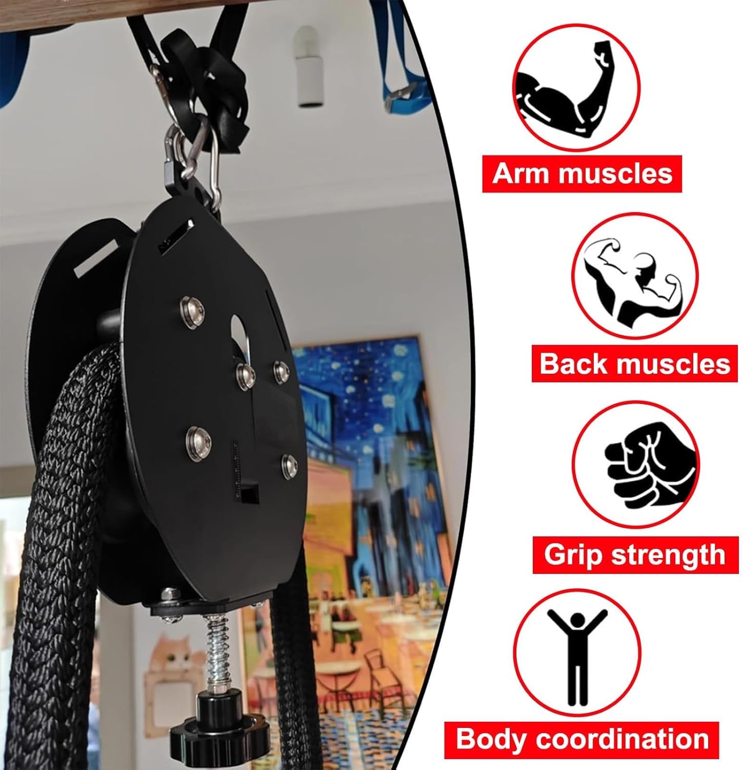 Are you tired of bulky fitness equipment taking up space in your home, or waiting for your turn to use the endless rope trainer at the gym? Our professional adjustable resistance pulley machine is the solution you’ve been looking for.This portable exercise machine allows you to work out anytime, anywhere—simply hang it up, and you’re ready to go, no assembly needed. It’s designed to deliver a comprehensive full-body workout, targeting your grip, arms, back, chest, core, and legs, while also improving strength, endurance, and coordination.Equipped with a 4m high-density wear-resistant nylon rope and sturdy carbon steel pulleys, it boasts exceptional durability, able to withstand intense twist and pull workouts. The adjustable resistance (up to 30kg maximum) adapts to all fitness levels, and the ergonomic design ensures comfort during every session, minimizing discomfort and maximizing results.With multiple training modes, it offers versatile training options to improve flexibility and coordination, making it suitable for home gyms, garages, commercial fitness centers, outdoor parks, gardens, cross-training zones, and more. Compact, portable, and easy to use, it’s the perfect companion to help you stay consistent with your fitness goals, no matter where you are.Technical DataProduct Name: Endless Rope TrainerMaterial: Nylon Rope (4m) + Carbon SteelColor: RedNet Weight: 7.6kgMaximum User Weight: 150kgMaximum Resistance: 30kgRope Length: 4mPackage Dimensions: 41 x 31.5 x 20 cm (16.1 x 12.4 x 7.9 inches)Package Weight: 8.1kgSuitable For- Home gyms and garages- Commercial fitness centers- Outdoor parks and gardens- Cross training and functional zonesPacking List1 x Rope TrainerNotes1. Due to manual measurement, there may be a 1-2cm error.2. Color may vary slightly due to different monitor settings.