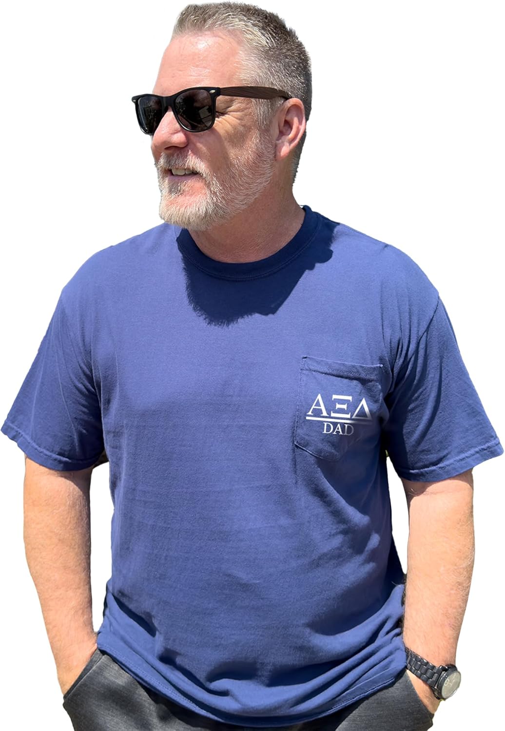 Comfort Colors pocket tees have a great "worn-in" feel. Licensed Alpha Xi Delta sorority design on the pocket.
