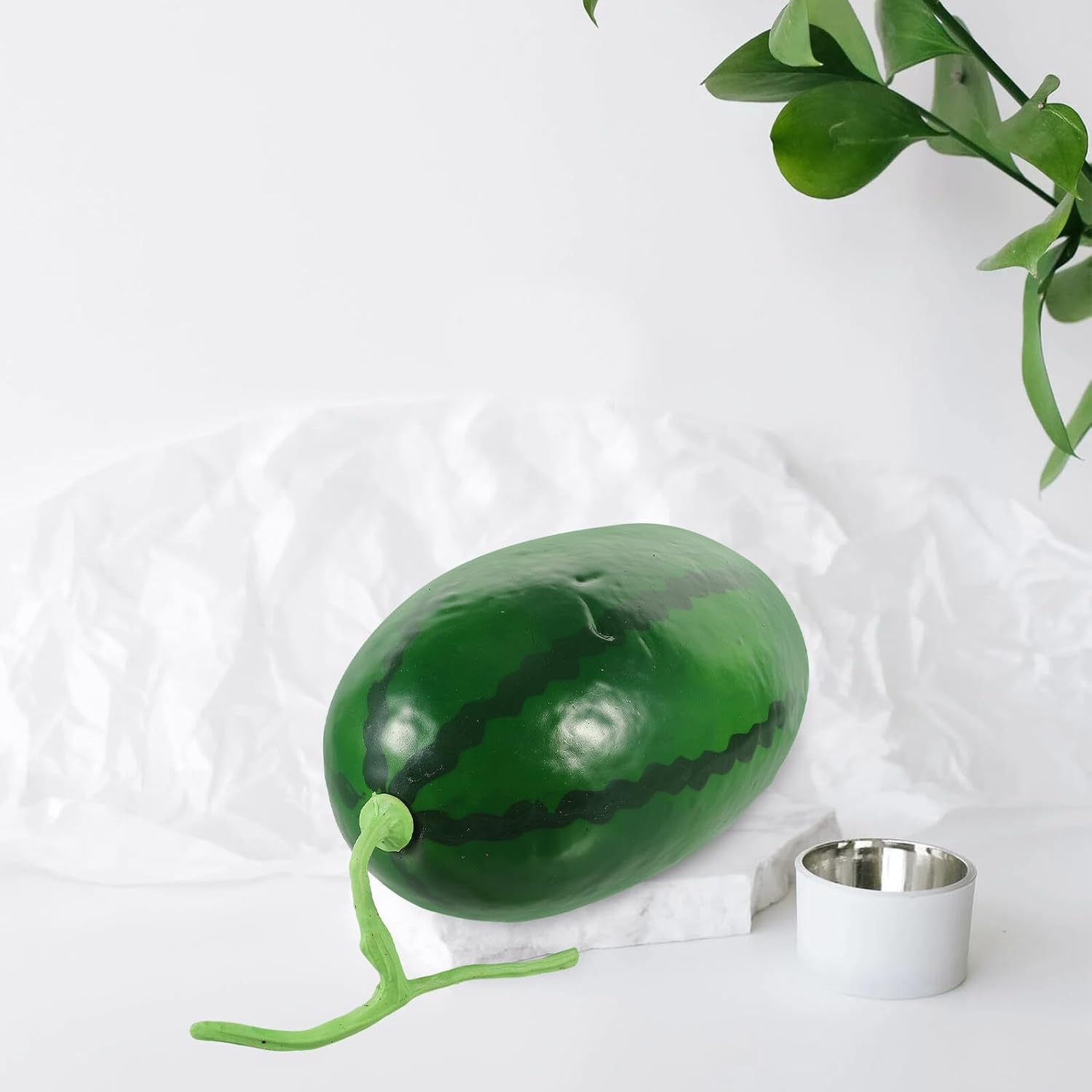 Package List 1 x watermelon model Characteristics -Product Info:Simulated watermelon model - Size: About 26.00X16.00X16.00cm/10.22X6.29X6.29in - Color: Green - Material:Foams - Suitable for kitchen display, restaurant decor, photography props, integral cabinet, furniture kitchen exhibition water melon fake fruits decor. - With a lifelike watermelon appearance, it adds a touch of vivid and natural style to your house realistic watermelon decor. - With craftsmanship and careful details, the fake watermelon model looks very realistic fake watermelon fruit. - Our simulated watermelon is realistic in appearance and beautifully made, which will attract the attention of your visitors fake fruit watermelon. - This simulated watermelon can be used and storage for longtime without damage and changing color.Goods Informationfake display watermelon Suitable for home decoration, and can also be used as dinning table decoration.fake watermelon for model Lightweight and compact, you can use this watermelon to decorate.fake realistic watermelon This product is an artificial Fruit Ornament, made of foams material