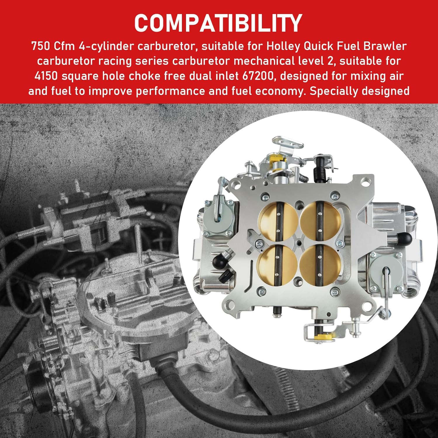 BR-67200 750 CFM 4 Barrel Carburetor for Brawler Race Series – Mechanical Secondary, 4150 Square Bore, No Choke, Dual Inlet (Fits Quick Fuel & 4150 Style Carburetors)