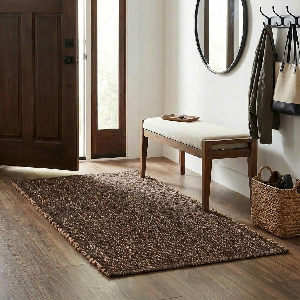 Our brown jute and cotton braided rug in size 2' x 3' is reversible, soft, and designed to bring lasting comfort and style to your home. Perfect for Entryway, Kitchen, Bathroom, this versatile rug blends natural durability with cozy texture, making it an ideal choice for everyday living.