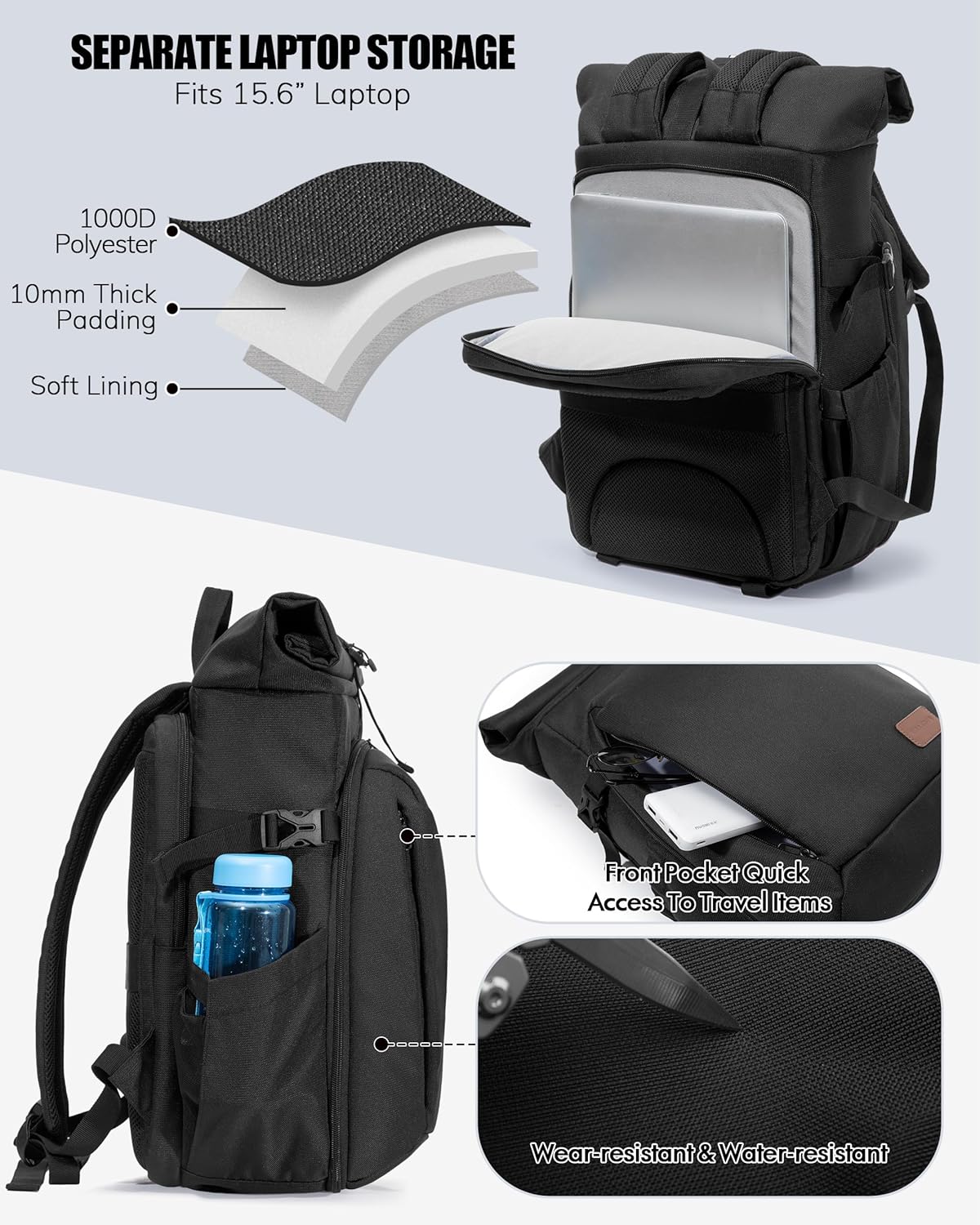 | Other Special Features of the Product | bottom tripod holder, padded adjustable dividers, padded laptop pocket, roll-top section, side pocket access to camera |