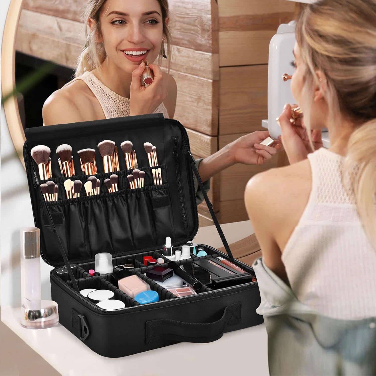 Travel Cosmetic Bag Cute Makeup Bag Travel Toiletry Bag Accessories Organizer Jewelry Box Portable Artist Storage Bag Material: Lightweight and durable polyester. Good Size: 14.6 x 10.6 x 3.9 inch, plenty of storage space. Style: Cute, elegant, funny, lovely, classic cosmetic bags. Design: 12 elastic pockets, 1 zipper pocket on the side, 10 adjustable insert dividers of different sizes, smooth zipper and top carry handle. Easy to clean: Hand wash recommended, please remove the boards before washing, do not bleach, do not wring, do not iron at high temperature. Why Choose Our Stylish Makeup Bag? Large capacity and large opening make it more convenient for you to use, whether it is daily outing, work or travel, it is an excellent cosmetic bag. This travel bag is perfect for liquid foundation, single-can eye shadow, eyelash curler, travel-sized makeup wipes, sunscreen, moisturizer and other items like earrings, electronic accessories. Cosmetic bags have a wide range of uses, suitable for different people, desk, locker, backpack, car storage. Keep separate and organized makeup and toiletries when you're traveling. Holds the on-the-go cosmetics you need every day for your daily work. Beautiful cosmetic bag is an exquisite gift selection for wife girlfriend, mother, daughter on Christmas, Mother's Day, Birthdays, Easter, Valentine's Day. Every girl needs a portable makeup bag to stay beautiful anytime and anywhere. Also a gift bag for bridal shower game. About Us 1. We are committed to providing customers with beautiful and practical products, welcome to our store to choose what you like and you will find your love. 2. We serve custom products to individual consumers, like pajama pants, backpack, water bottle, car windshield sun shade, storage basket, laundry bag, barber cape, clipboard, shower curtain, garden flag etc..