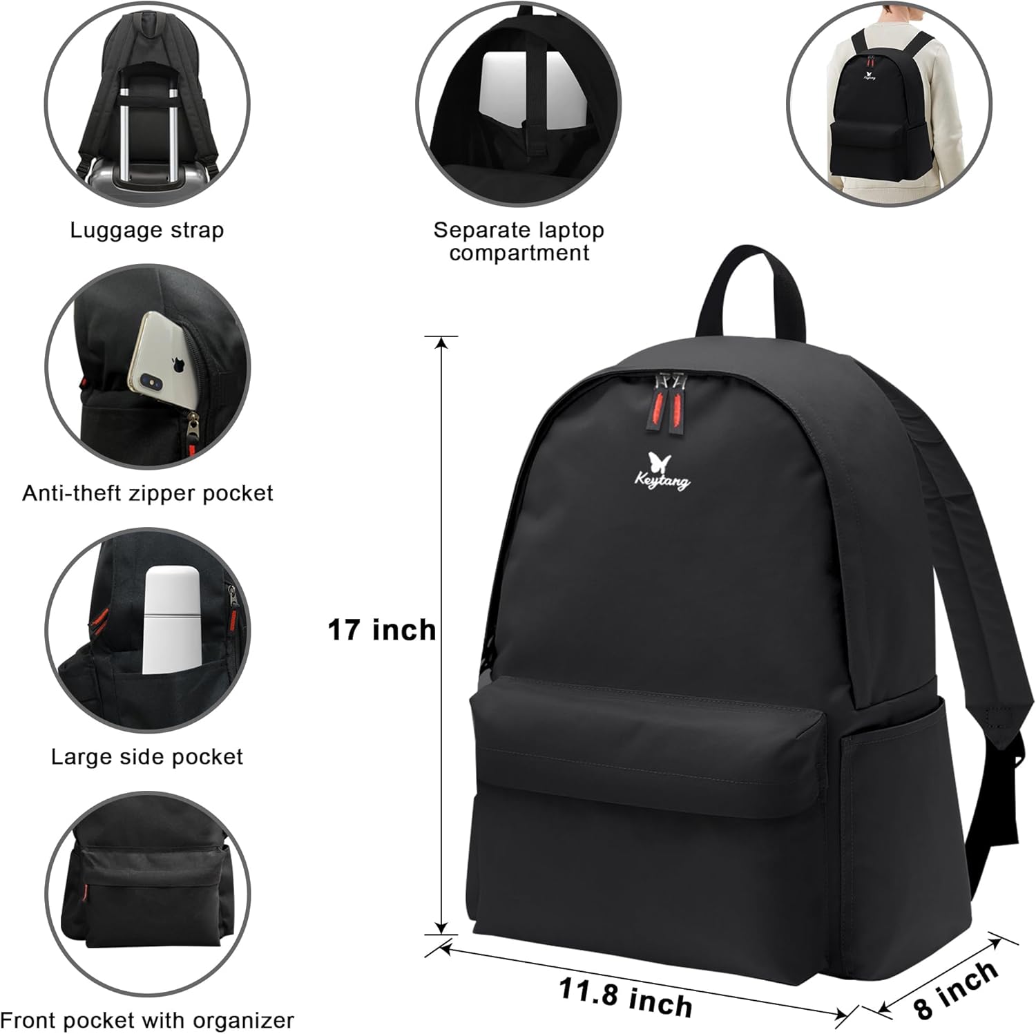 • Backpack: This exclusive book and travel backpack is designed to carry everything you need and more! The backpack both for women and men has an extra-large carrying capacity, 2 large main compartments, and a dedicated 15-inch padded laptop sleeve.