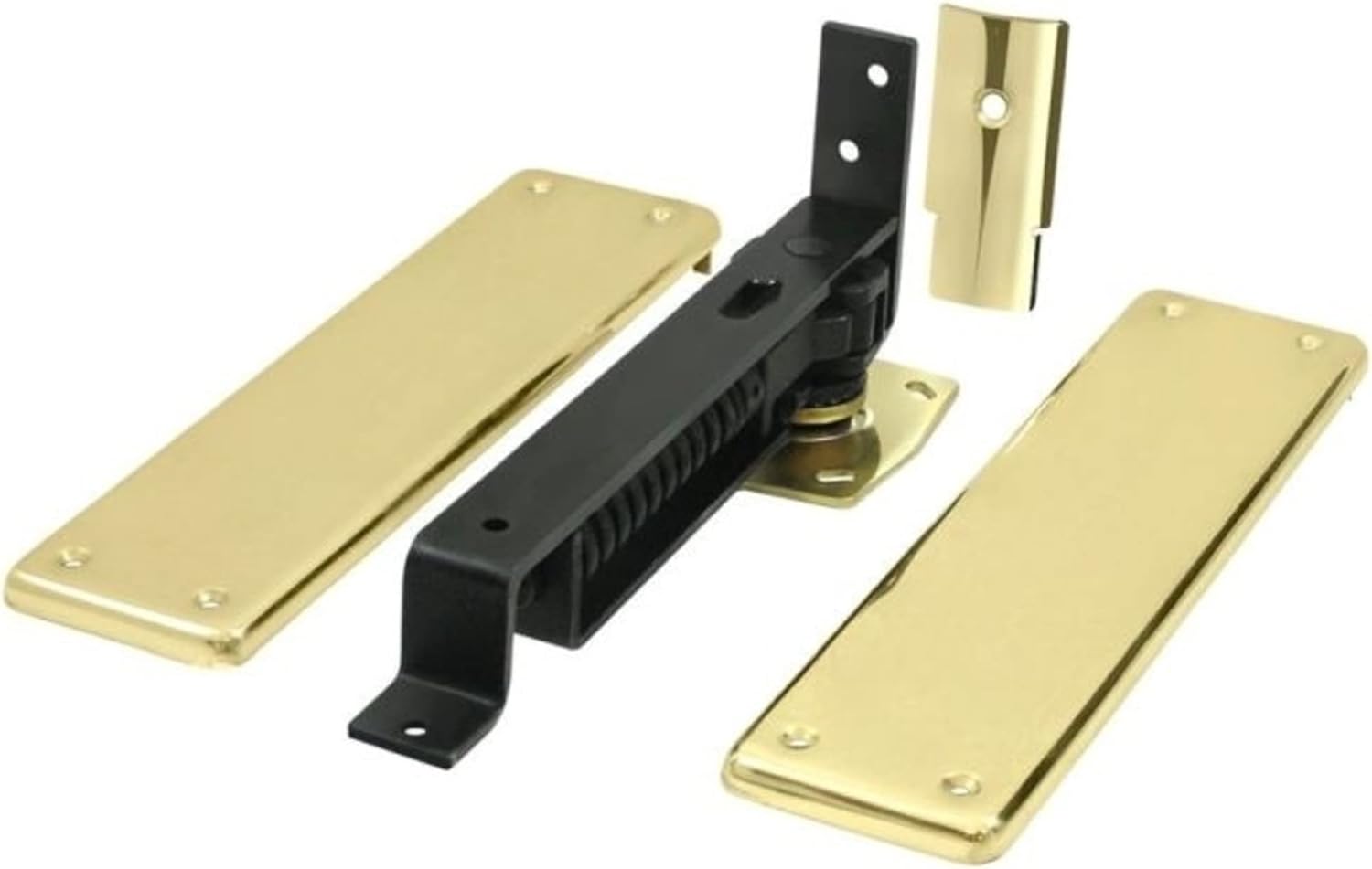 The Double Action Spring Hinge is a floor-mounted self-closing hinge with solid brass cover plates and trim. It swings in both directions and has a hold-open feature at approximately 90 degrees. Features: Includes a single (1) hinge in each order Constructed of stainless steel for durability and dependability Tested for residential strength applications and is ideal for your home Constructed with (6) screw holes in an arc arrangement for maximum mounting strength Covered by Deltana's 1 year finish and 3 year mechanical manufacturer warranties Double Action Spring Hinge Specifications: Height: 1-15/16" Width: 9-1/4"