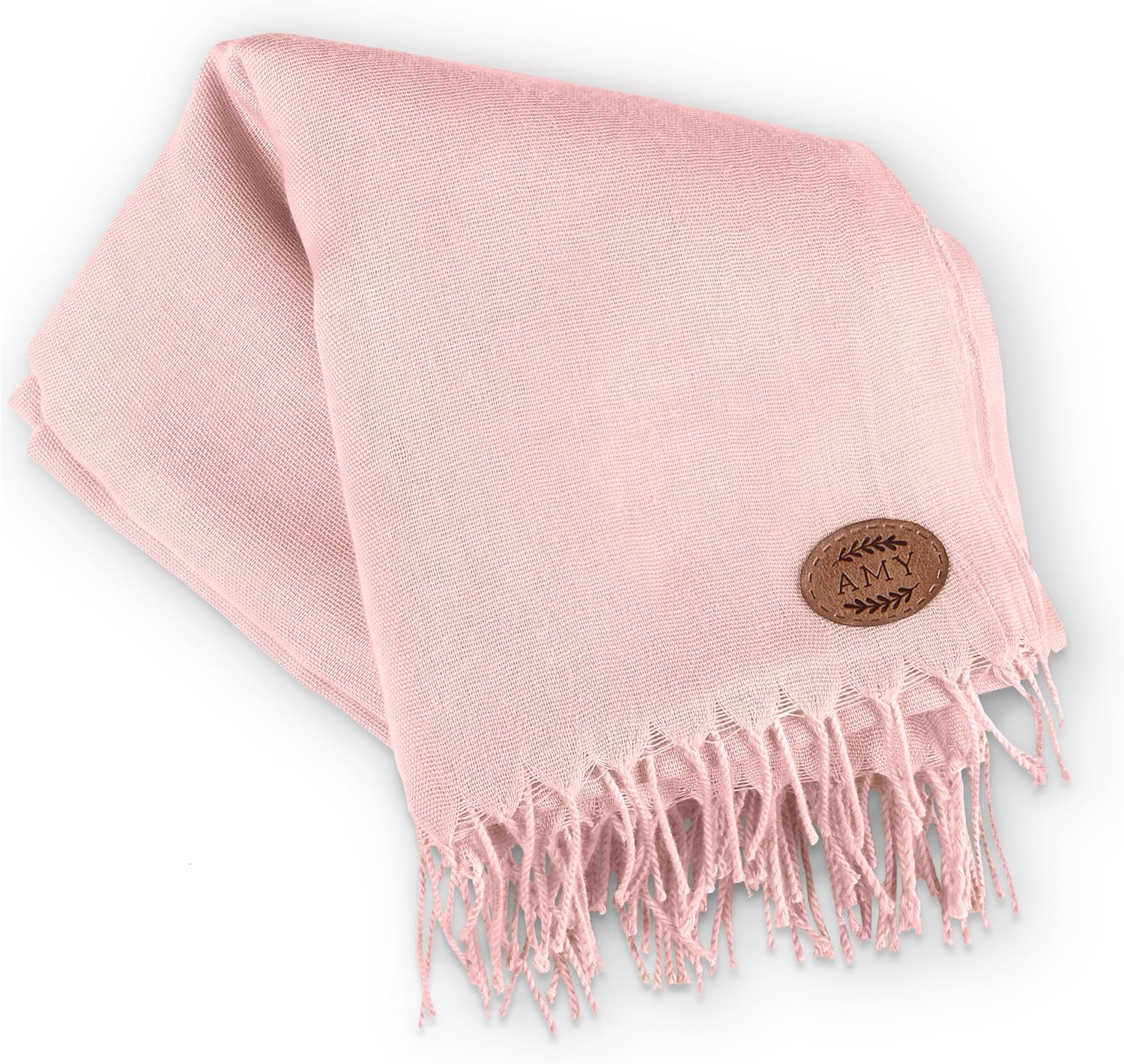 Pashmina's are the perfect wardobe staple. So versatile, as a scarf on cold days, a cover up on cool summer eveneings or even to brighten up a plain and boring top. In a choice of four pretty pastel colours these super-soft pashmina scarves are made from a silky soft, lightweight fabric that feels great against the skin. Pre-personalised with heat-pressed family names and monograms. The perfect gift idea, the pashmina scarf comes in pretty floral packaging that features sweet sentiments. Please note that the items are pre-personalised. The name or title you select is what you will receive,