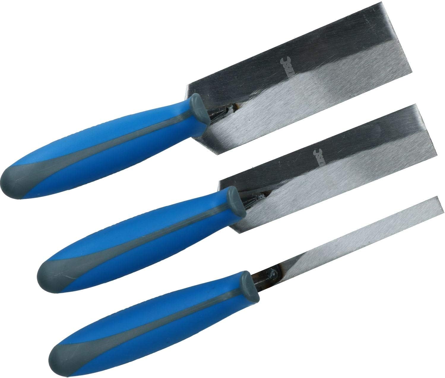 This listing is for a 3 piece margin trowel set. Very useful tools, margin trowels are used for plastering / working motor in tight areas, applying mortor to small tiles/slabs, mixing small batches of motor/filler/grout, pointing, cleaning concrete/plaster decorative molds and forms etc... Hardened and tempered high carbon steel blades. Rubberised soft-grip handles. 3 piece set includes; 150mm x 50mm blade size, 150mm x 38mm blade size & 150mm x 12mm blade size. All trowels are 28cm total length. Balanced handles for ease of use.