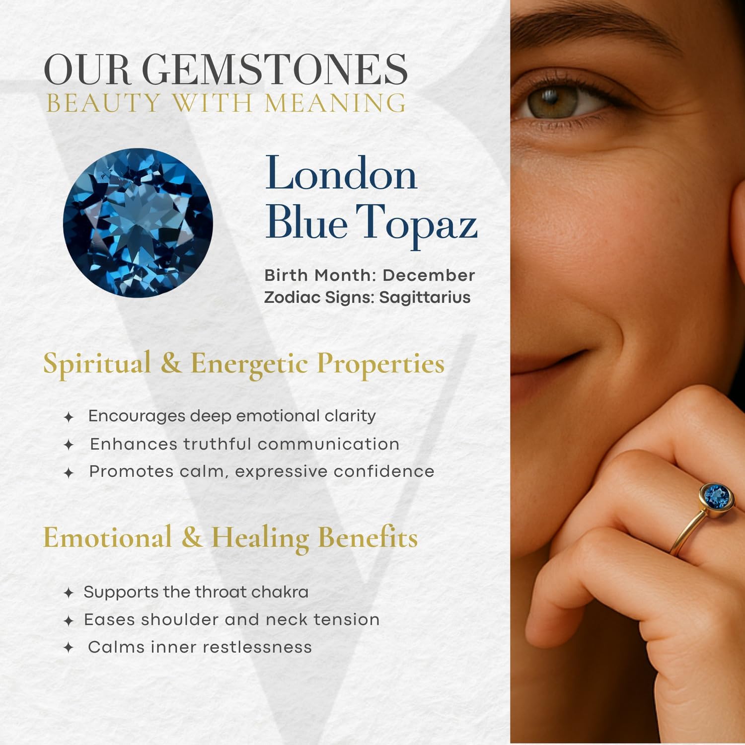 Deep teal topaz set into a clean closed bezel. Protective edges, clarified color, and a form built for enduring wear. If you like depth with restraint, this fits.