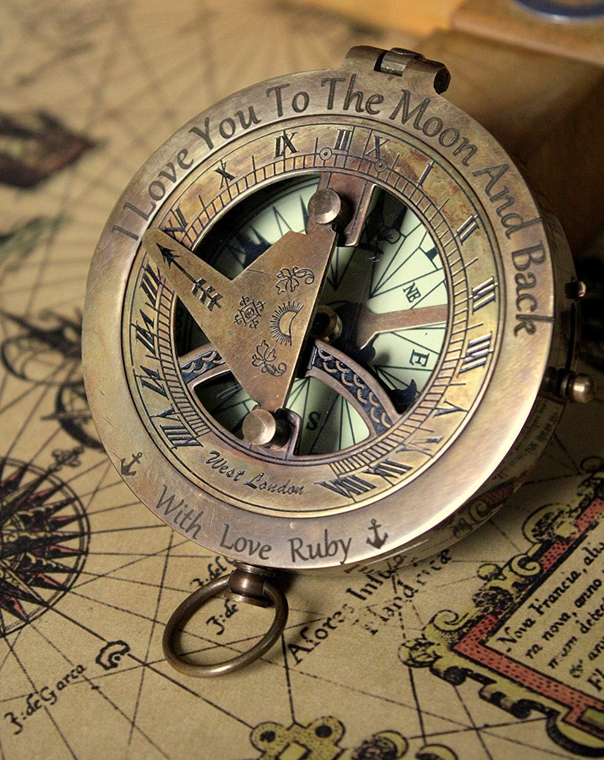 Free engraving on handcrafted brass compass with Sundial clock , Engraving will be done in same manner as shown in pictures, it will come with real leather case. The size of compass is 3 inches. Can be gifted to any occasion, baptism, Graduation, Anniversary, long distance relationship, love gift, valentine's day, thanks giving, Christmas, New year, birthday day, dad gift, Son to dad, Dad to son, Mother day. ABOUT DELIVERY Turn around time is 1 business day and I ship your order in 1 day after you placed your order. Delivery takes to USA, CANADA, AUSTRALIA AND EUROPE JUST 3-7 DAYS. Personalized engraved compass, baptism gift, working compass, fathers day gift, Christmas gift, valentines day gift I can engrave whatever you want, I can use every fonts that you want. I can fit around 75-80 characters on back side of compass as shown in pictures . We can also engrave your own handwriting, can also engrave a logo, symbol or an image. Item comes with the handstiched leather case as in the pictures. Diameter: 3 inches The Perfect gift for travelers (armchair or otherwise), our Antiqued Brass blessings Compass With pure genuine leather Case includes a This is a gift that will be cherished for generations. This beautiful compass is handcrafted to give on following occasions Buying a New Home Birthday January 1 - New Years' Day Wedding Anniversary February 14 - Valentine's Day Bridal/Baby Shower March 17 - St. Patrick's Day Bachelorette/Bachelor Party between March 22 - April 25 - Easter Engagement Wedding Day Surprise Birth of New Baby or New Mom/New Dad 2nd Sunday in May - Mothers' Day Promotion 3rd Saturday in May - Armed Forces Day job Anniversary Last Monday in May - Memorial Day New Job/New Career 3rd Sunday in June - Fathers' Day New Employee/Welcome October 16 - Boss' Day Good Bye/Moving December 25 - Christmas Graduation Passed a Big Exam Surgery Get Well Soon/Welcome Home from Hospital Weight Loss Thank You/Appreciation Sympathy Apology