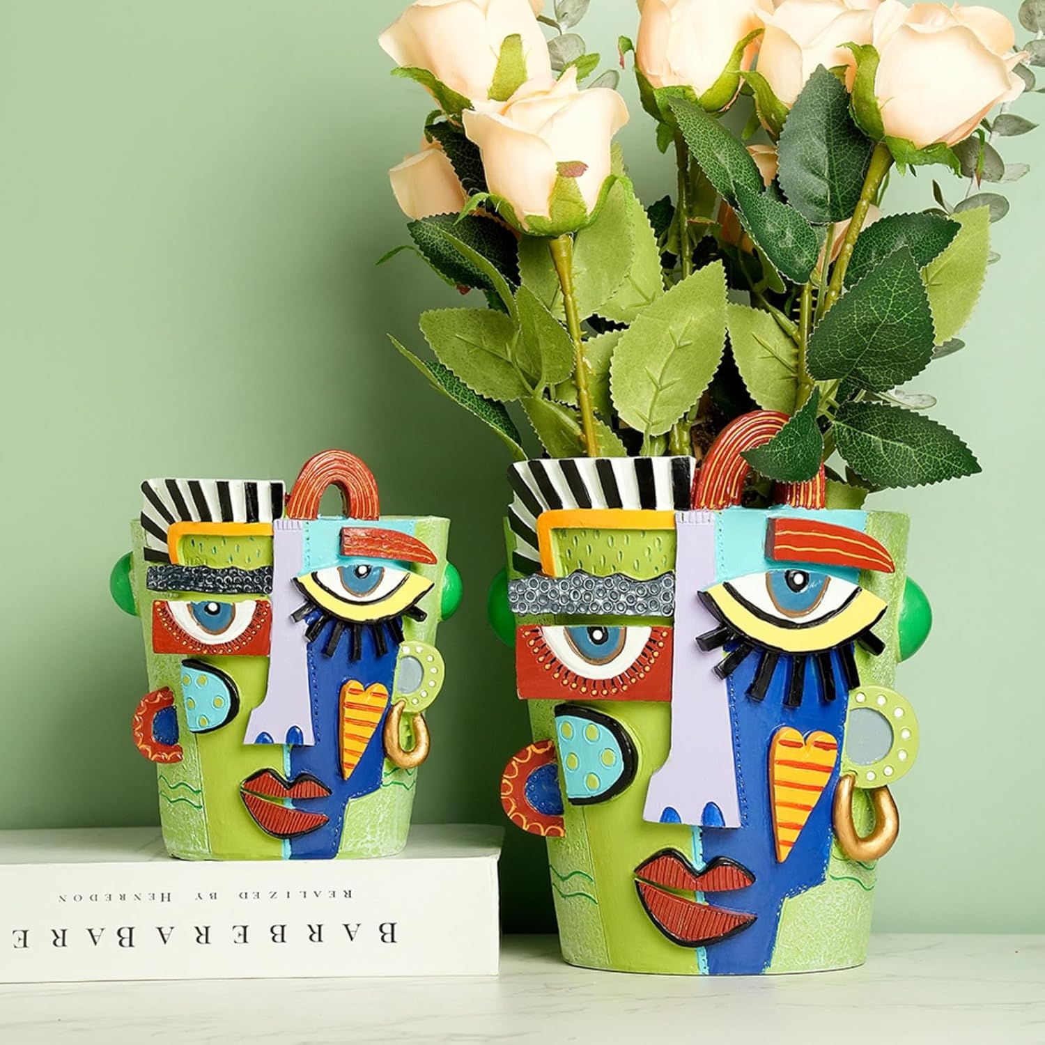 Description: Whether you use it at home or in the workplace, this colorful and elegant face flower pot head planter adds a unique flavor to it! Show your taste and interesting personality! Specifications: Material: Resin Size and Weight: Large: 6.7*6.1*7.8in; 700g Small: 5.2*5*5.9in; 600g Package Included: 1 /2 PCS x Picasso Abstract Flower Pot Warm Tips: 1. Due to manual measurement, there may be 1-2 cm errors. 2. Due to lighting effects, monitor brightness and other factors, the color of the photo may be slightly different from the actual object, thank you for your understanding.