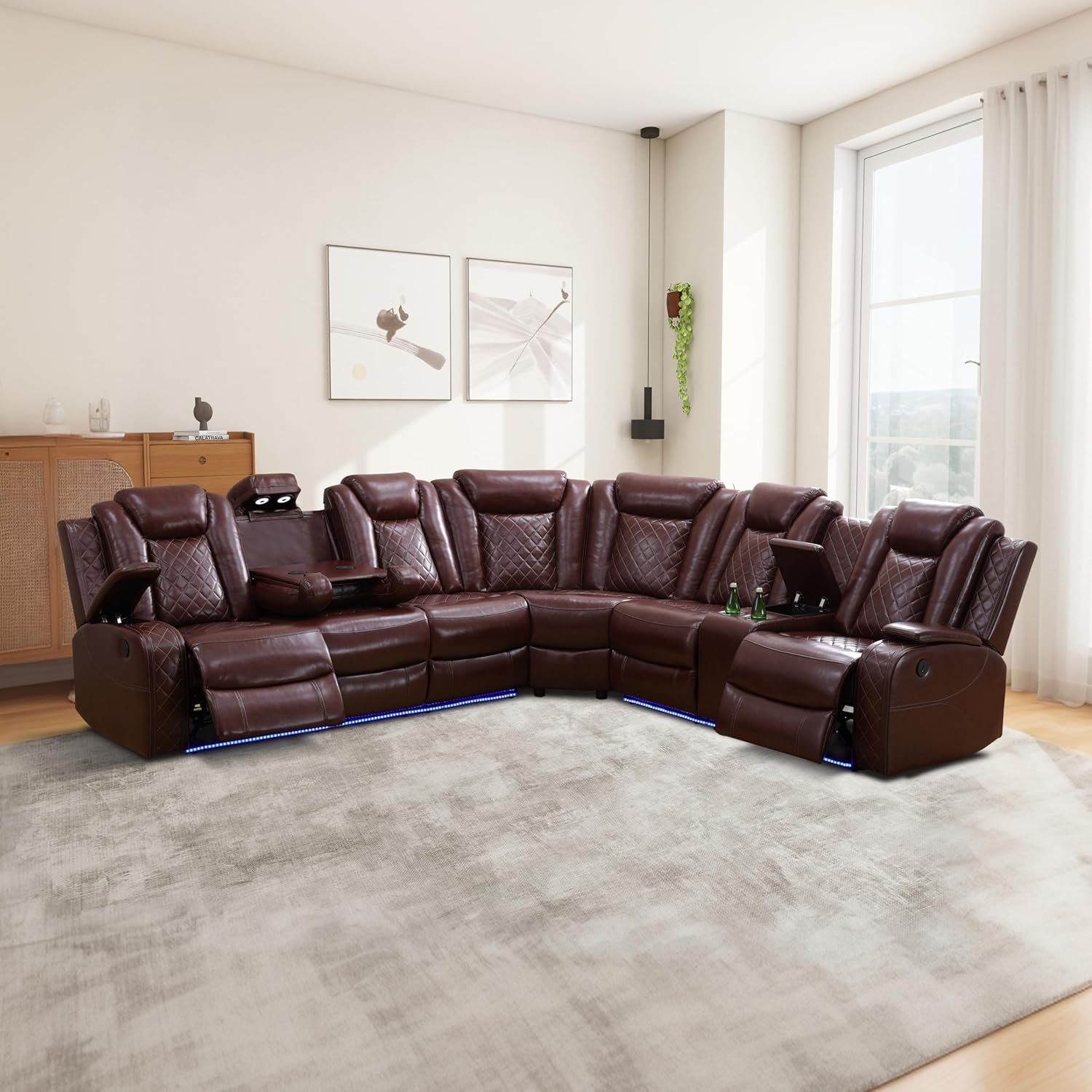 SIENWIEY Leather Sectional Sofa with Recliner,Power Reclining Sectional Couch Electric Recliner Sofa for Living Room Furniture SetsSKU:GN473AColor:Black,White,Wine RedMaterial:Premium Faux Leather(Breathing Leather)Frame:Solid WoodStorage Space:Loveseat Storage Console and Two Cup HoldersElectric Function:Power recline,LED Theater Lights,Wireless Charging,USB Charging,Head Lamp,⚠NOTE:Only Curbside(Roadside)Del !!!Applicable occasions:Living room,Reading room,Studio,VIP Lounge,Theater,Office ect.