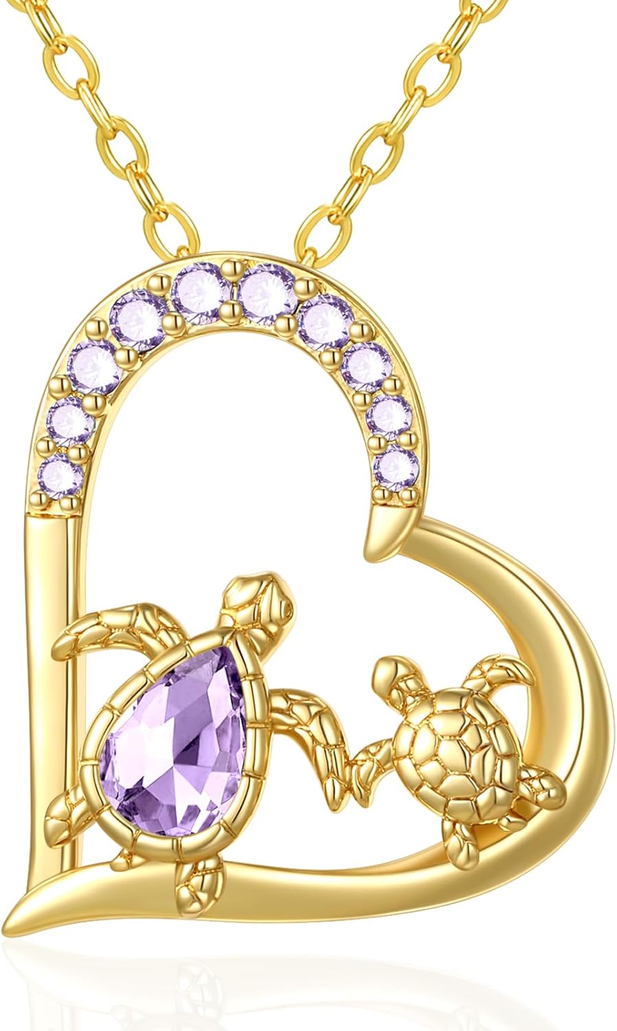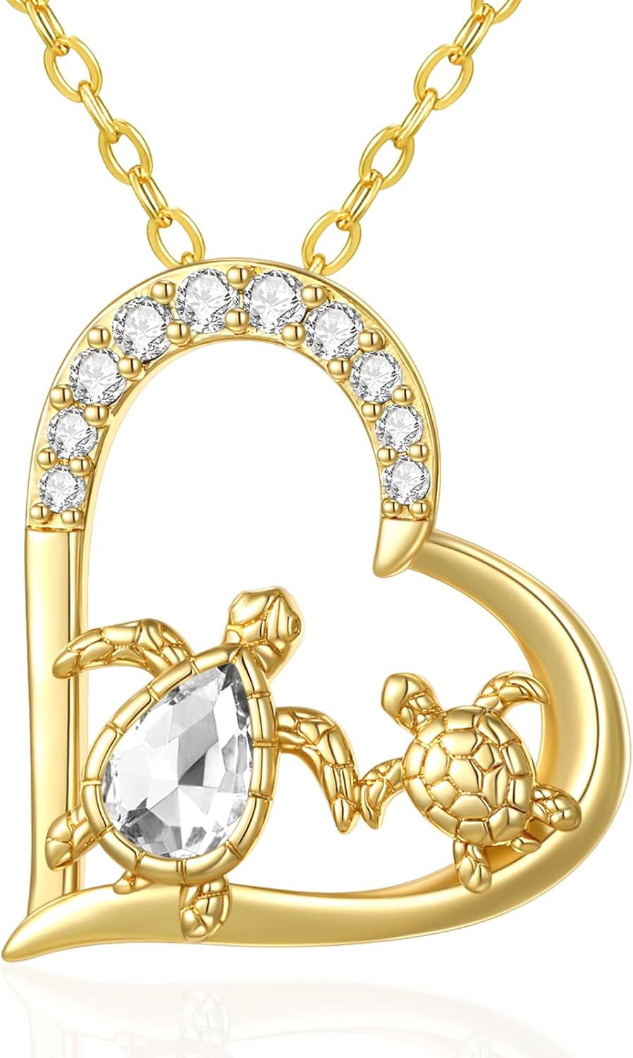 • 【Unique Turtle Heart-shaped necklace】:This unique turtle heart-shaped necklace is made of 14k gold plating and features a heart-shaped design.It features two sea turtles,the larger one with green zircon as its main gemstone.The heart-shaped frame is inlaid with green zircon.The heart shape represents eternal love and connection.Sea turtles symbolize longevity,stability and protection.This necklace is the perfect accessory that carries the warmth of the ocean and the eternal bond.