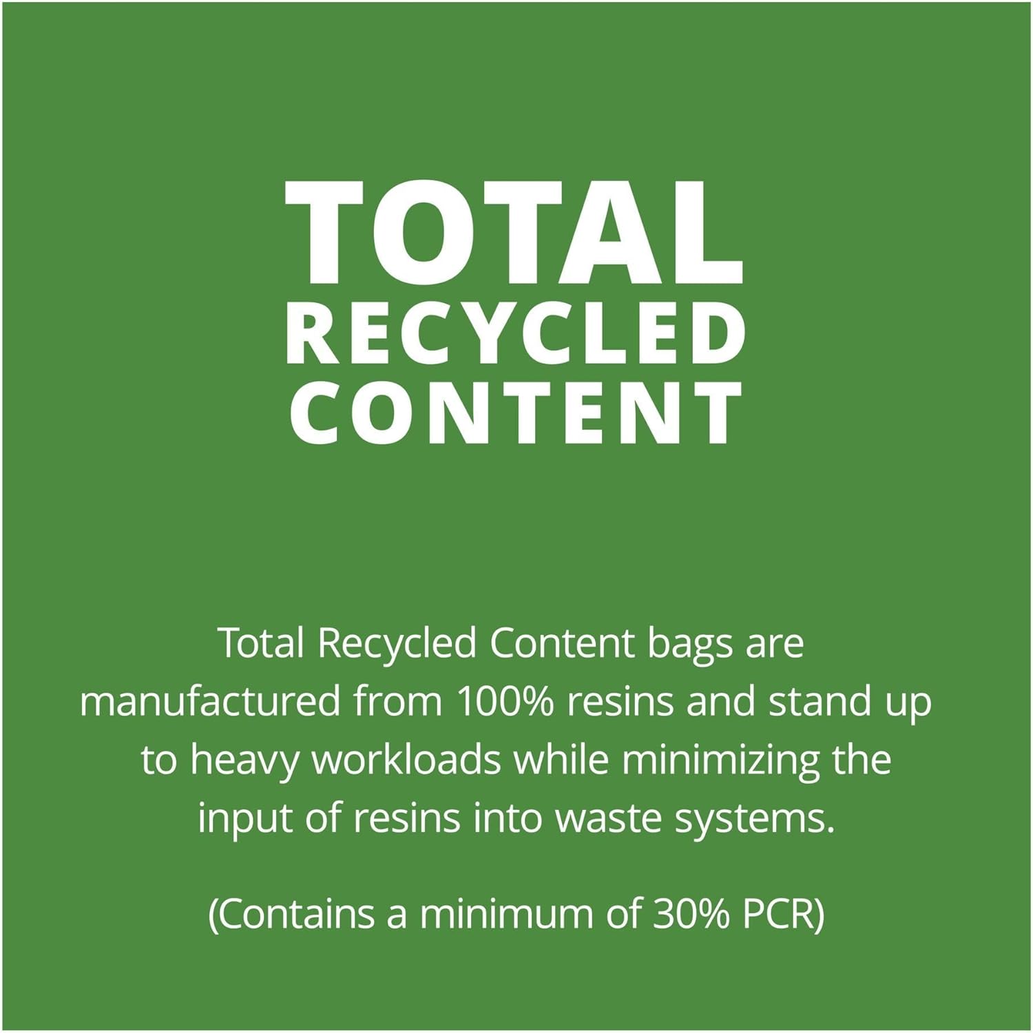 TOTAL RECYCLED CONTENT “TRC” BAGS Total Recycled Content bags are manufactured from 100% recycled resins (minimum 30% postconsumer recycled material).“TRC” bags stand up to the heavy workloads while minimizing input of resins into our waste systems by recycling.