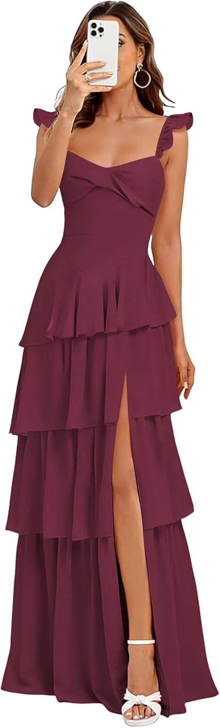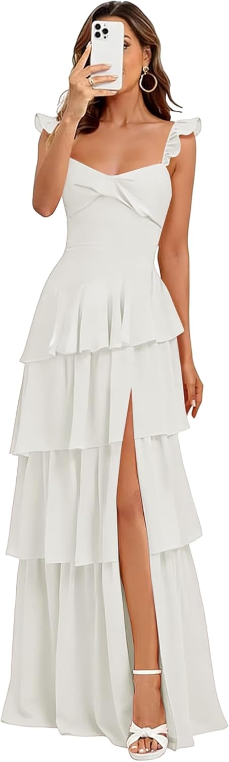 Welcome to AKMESXAY! We offer high-quality wedding dresses, bridesmaid dresses, wedding guest dresses, formal evening gowns, and other special occasion attire. Shop with complete confidence—we’re here to serve you with pleasure. Elegant spaghetti straps bridesmaid dresses for women Features: Fabric:Chiffon Features: Spaghetti Straps Ruffle A Line Pleated bridesmaid dresses ,Elegant Tiered Floor Length Formal Dresses with Slit for Women,High Quality Chiffon Fabrics Formal Evening Gown for many Special Occasions . Sleeves:Sleeveless Silhouette: A Line Back Design:Drawstring How to choose size: Measure your body and compare it with our size chart. If you want a more accurate fit, please send us your measurements as follows: 1. Bust___inches or___cm 2.Waist___inches or___cm 3.Hips___inches or___cm 4.Hollow to floor ___inches or___cm 5.Height(without shoes)___inches or___cm 6.The date you need the dress:____ How to contact us: We provide customers with 24 - hour online consultation service. If you need any help, you can contact us at any time.