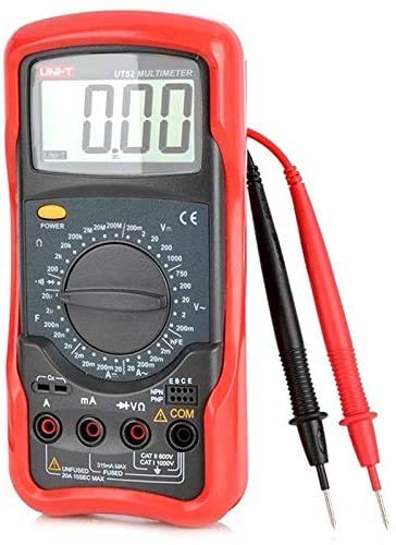 Features:Transistor: yesDiode: yesContinuity Buzzer: yesSleep Mode: yesLow Battery Display: yesInput Impedance for DC Voltage Measurement: 10MOhmMax. Display: 1999 Measuring Inductance Range:as description showDC Voltage: as description showDIY Supplies: ElectricalAC Voltage: as description showMeasuring Resistance Range: as description showModel Number: UT55Measuring Capacitance Range:as description showAC Current: as description showOperating Temperature: 0 - 40 Deg.CDisplay Type: Digital DisplayDC Current: as description showOperating Mode: as description showMax. Display: 1999DC Voltage: 200mV / 2V / 20V / 200V / 1000VAC Voltage: 2V / 20V / 200V / 750VDC Current: 2mA / 20mA / 200mA / 20AAC Current: 2mA / 20mA / 200mA / 20AInput Impedance: 10MohmResistance : 200ohm / 2Kohm / 20Kohm / 200Kohm / 2Mohm / 20Mohm / 200MohmFrequency: 2KHz / 20KHzCapacitance: 2nF / 20nF / 200nFTemperature: -20 Degree - 1000 Degree