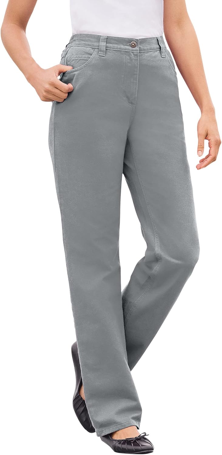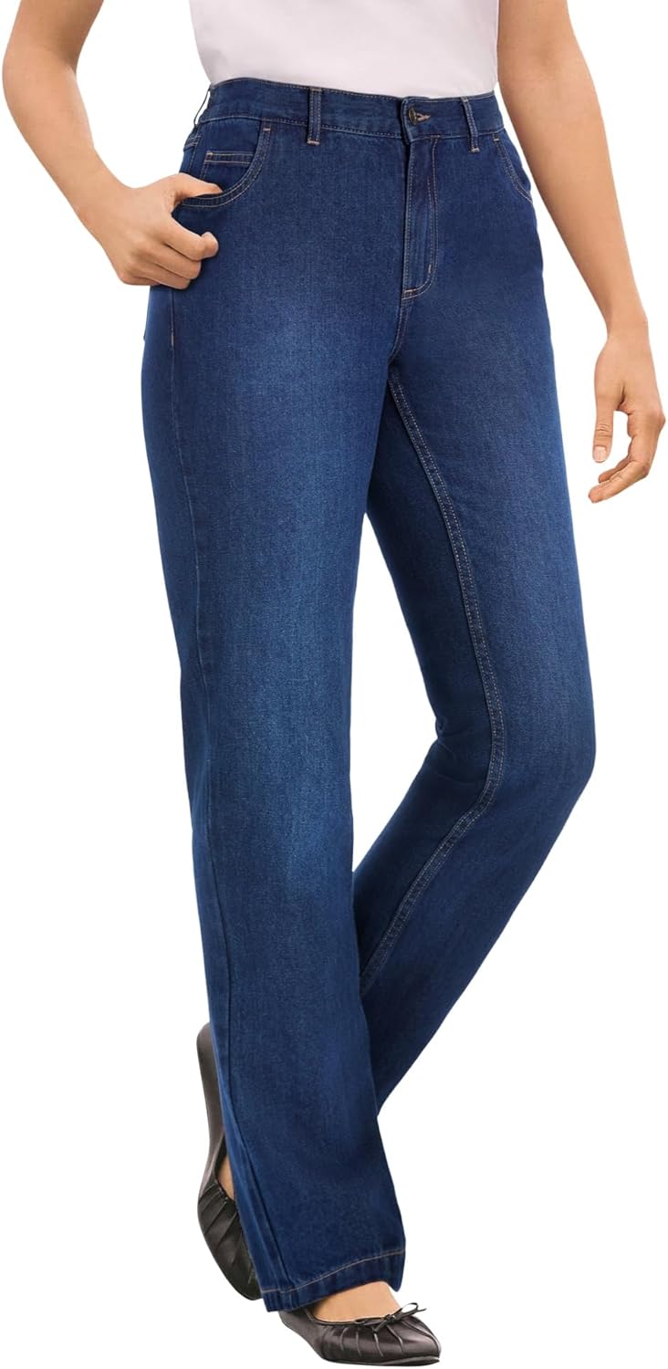 Classic jeans in pure cotton denim is great any time of year. Enjoy a comfortable, perfect fit with this elastic back waistband style tailored for a gap-free fit. Our Perfect Denim jeans are made from non-stretch 100% cotton that gives you a custom-feeling fit as you wash and wear. Convenient zip fly and button closure for easy wear. br> Five-pocket styling for a timeless denim look. br> Back-elastic gives non-gap fit br> Available in Average: 30" inseam, Petite: 28" inseam, and Tall: 34" inseam. br> Non-stretch 100% cotton for breathable, long-lasting quality. br> Easy to care for – machine washable. br> Classic straight-leg design. br> Imported.