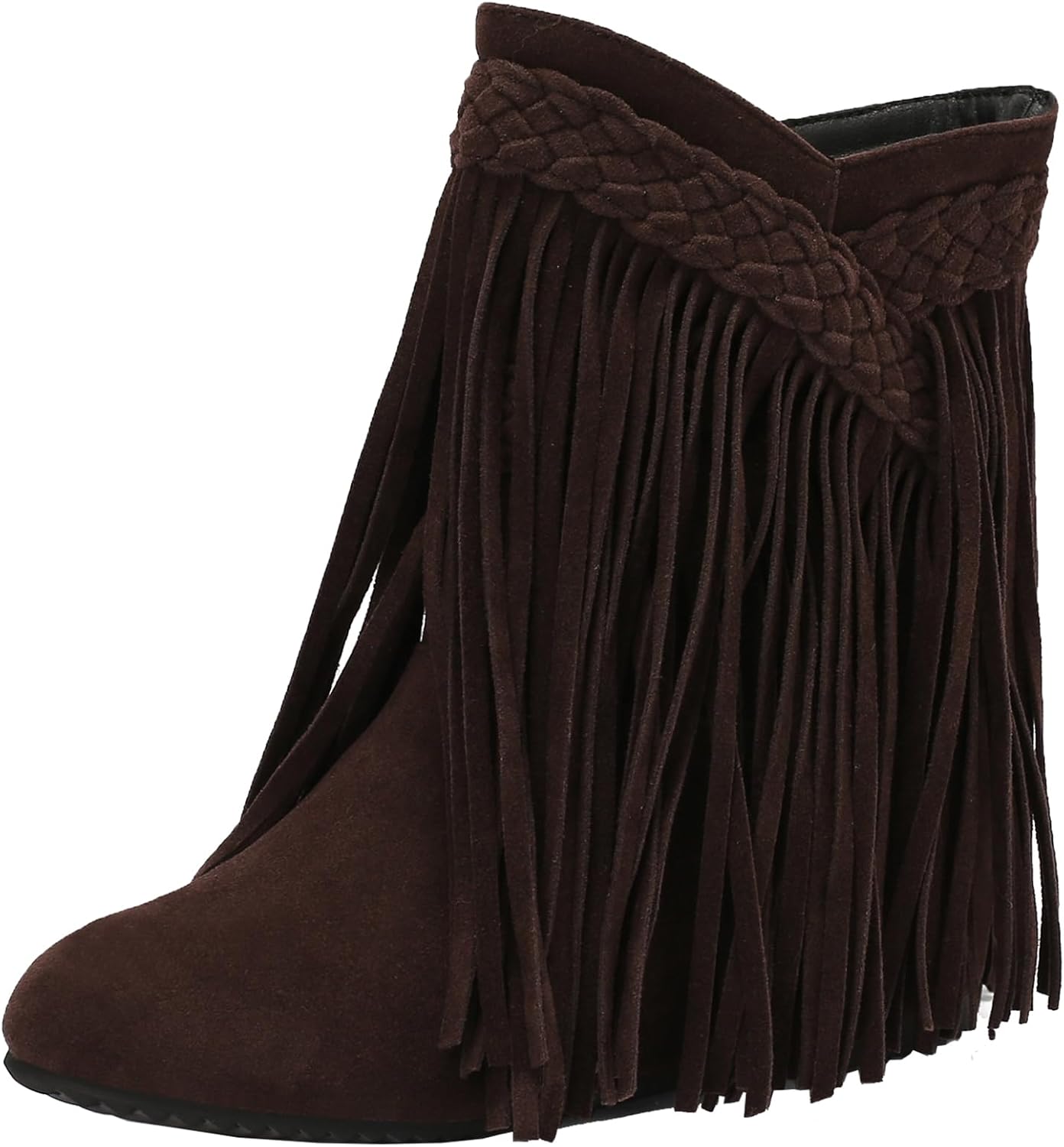 • Unique Fringe Detailing: The fashionable fringe design adds a touch of uniqueness to your look, setting these ankle boots apart from traditional styles and showcasing your trendy sense of fashion.